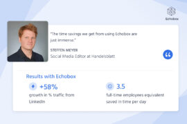 We’re strong believers in a vibrant, free independent press. At Echobox, we’re devoted to helping publishers thrive in a turbulent world and we’d love to hear back from you with any feedback or questions you may have. If you’re an Echobox customer you can reach out to your Customer Success rep. Otherwise you can find us at Facebook, LinkedIn and, of course, Twitter.