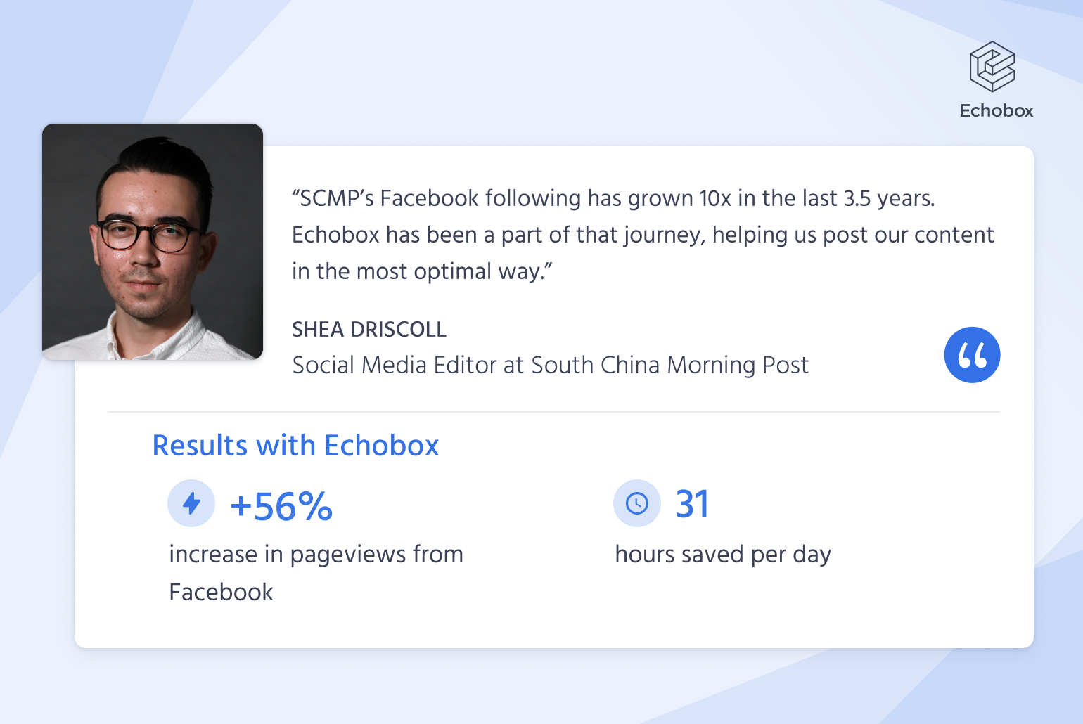 This efficiency freed up the team to focus on high-impact areas like video content and A/B testing, further maximizing performance. As Shea concluded, “SCMP’s Facebook following in particular has grown 10x in the last 3.5 years… Echobox has been a part of that journey, helping us post our content in the most optimal way.”