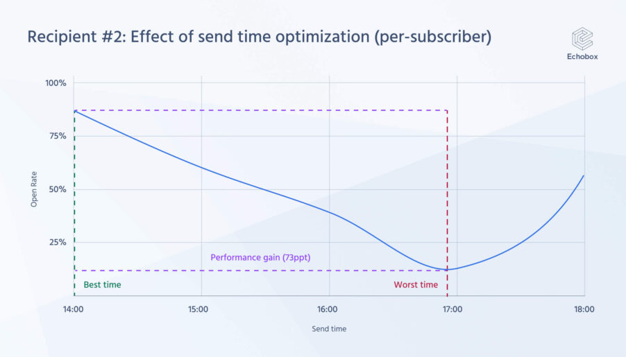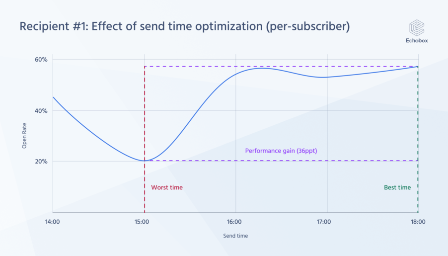 We studied the impact of send time personalization. Our study showed that optimizing a send time for each subscriber resulted in an average increase in open rate of +52%.