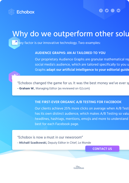 - We studied Echobox, Hootsuite, SocialFlow, Sprinklr and Buffer