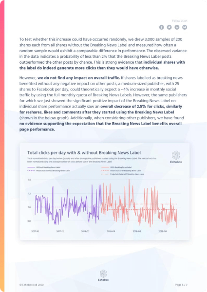 But does the Breaking News Label drive more traffic and engagement? Does it improve publishers’ overall Facebook page performance? We conducted a comprehensive study of leading publishers’ data to find out.